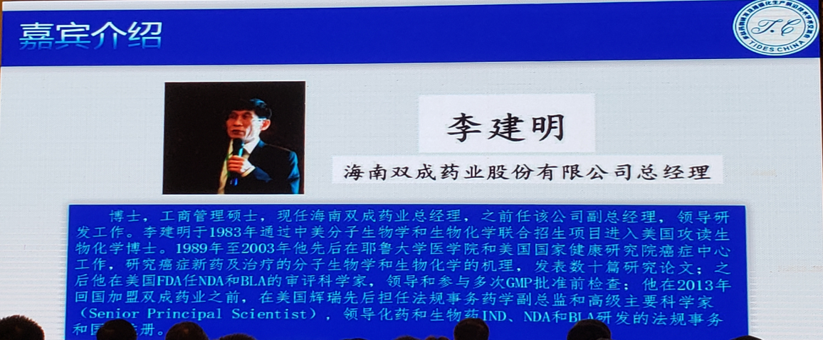 双成药业总经理李建明博士出席第五届多肽药物研发及规模化生产前沿技术学术交流会