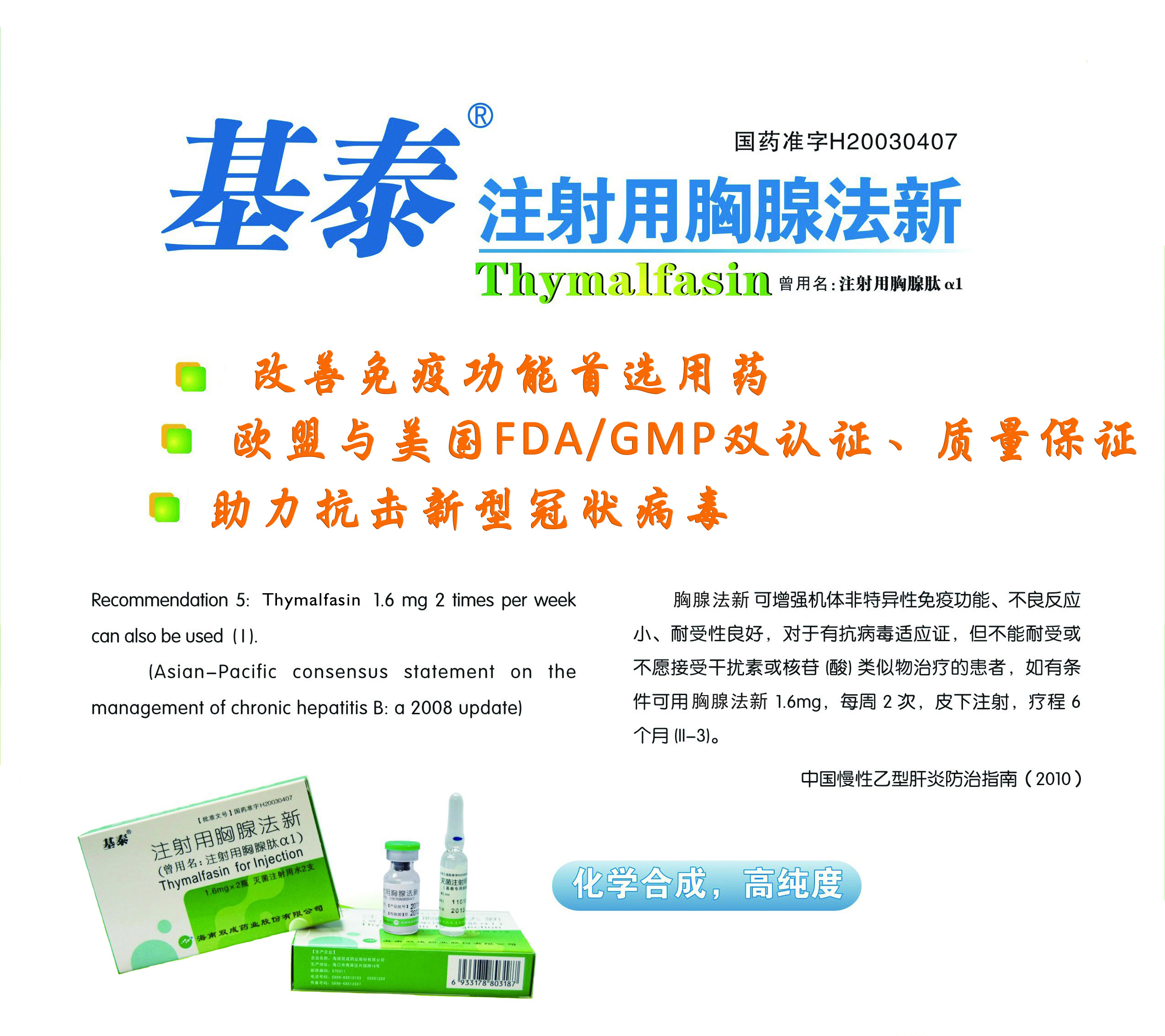 注射用胸腺法新在免疫调节领域得到了临床的广泛应用及认可,特别是抗病毒和增强免疫应答方面疗效显著,在世界上30多个国家获批上市。公司生产的注射用胸腺法新是国内同一品种唯一在欧盟原研上市国家申报获批的产品,也是国内首家申报药品一致性评价的同类品种,其生产线多次通过美国FDA和欧盟EMA的GMP检查。这次双成药业捐赠的注射用胸腺法新可以用于提高医务人员对新型冠状病毒的免疫能力,使他们更好的顽强战斗在抗疫的前线。